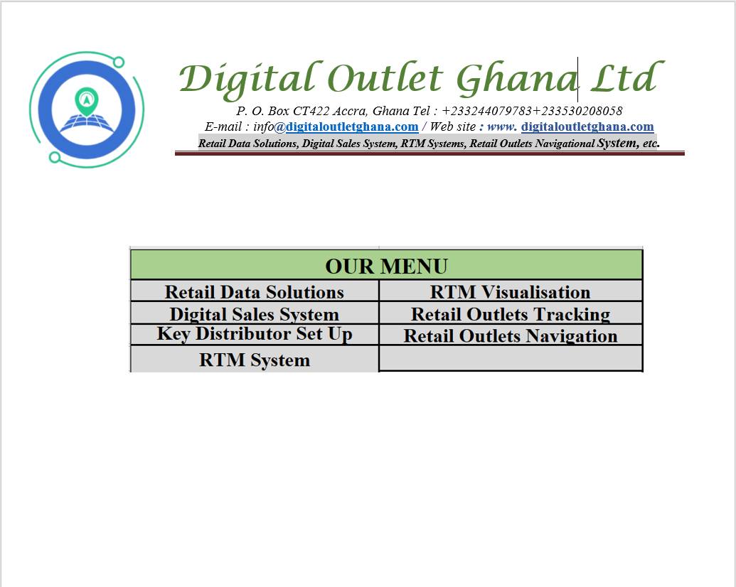 D.O.G Insights is a retail intelligence and outlet mapping company dedicated to helping brands expand smarter and faster. We specialize in retail audits, field data collection, outlet census and classification, and route-to-market optimization. Using GPS-enabled tools and real-time analytics, we build accurate retail and wholesale databases, uncover distribution gaps, and deliver actionable insights that drive market growth and retail execution performance.